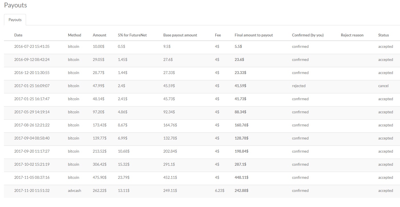 - 12. 9. 2016 Zažádáno o výplatu - došla do 10 minut na mou peněženku. Nyní denně dostávám 6.4 USD.